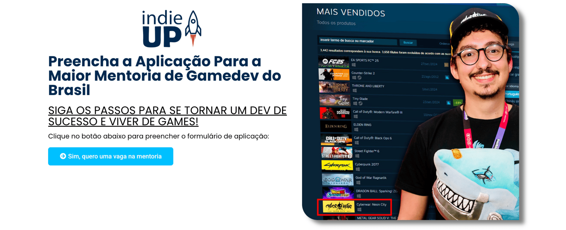 Amanhã eu vou abrir as vagas da Mentoria Indie UP.