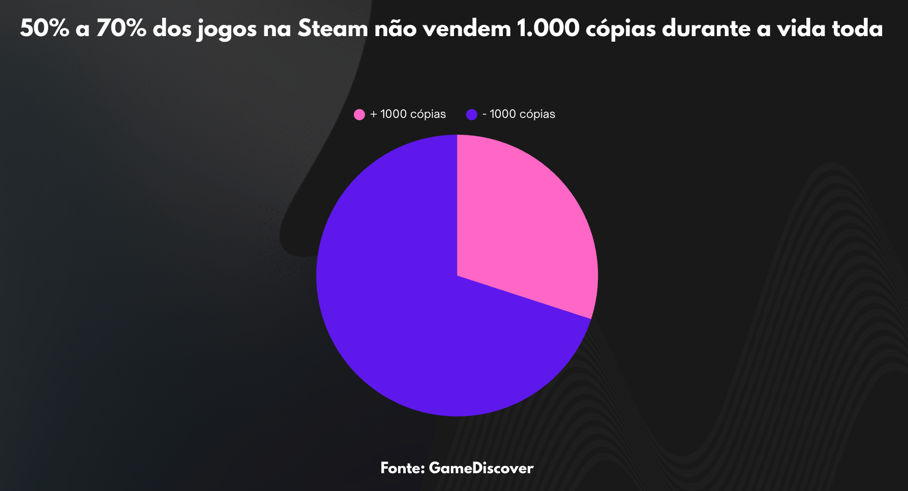 Ano passado tivemos em média 40 jogos novos lançados por dia só na Steam. Desse total, cerca de 70% não vendeu e nem venderá mais do que 1.000 cópias.